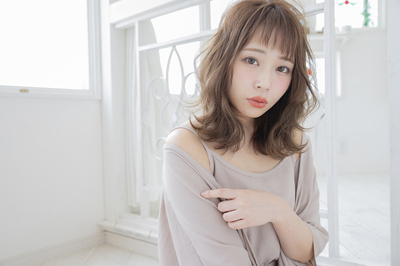◆カット+カラー+パーマ パーマとハイトーンメッシュで軽やかで優しい印象に。
